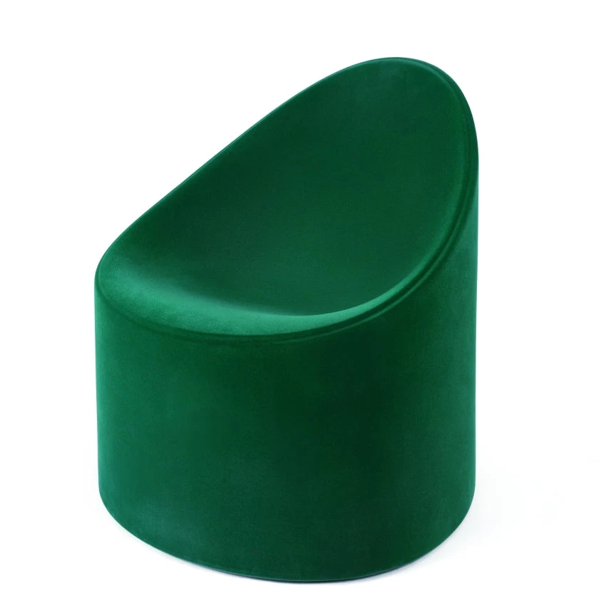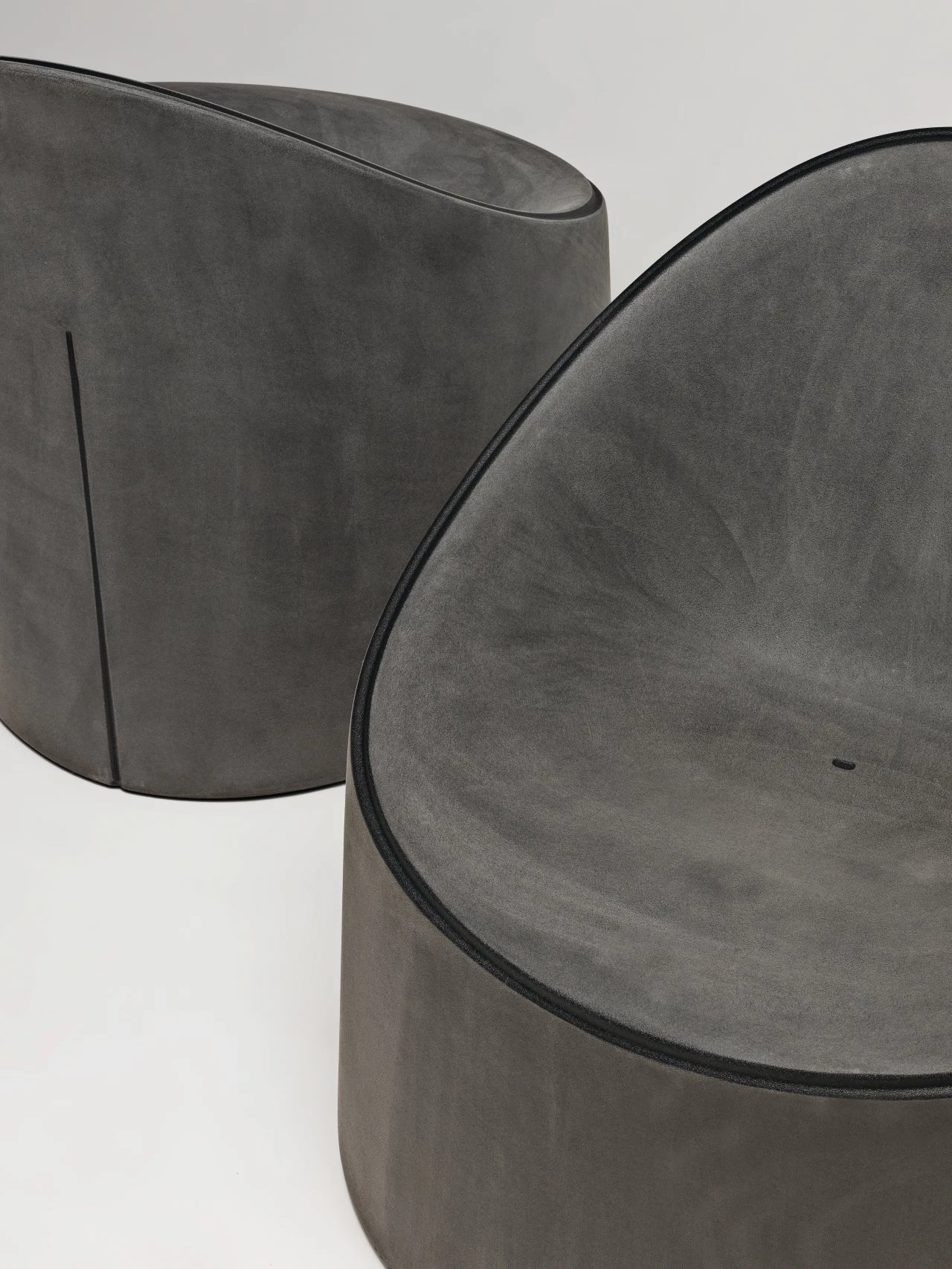 Light, harmonious, essential, small in size, characterised by a marking on the contours and the back of the backrest similar to the seam lines of a seamstress shape, reminiscent of the upholstering of a fabric armchair.