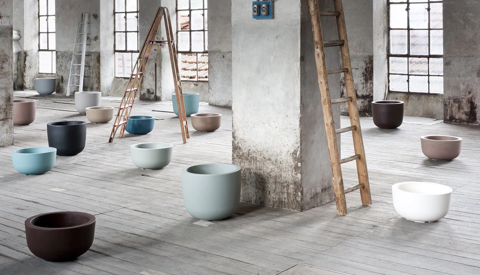 Plant pots inspired by ancient elements, like carved wooden bowls. Clean lines and a simple, unobtrusive design that already has a classic scent.