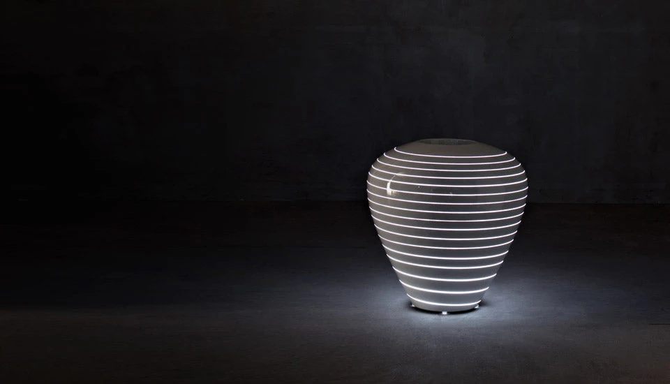 Grand Mary is an illuminated pot, sister to Grand Jane. Both pots are part of the outdoor patio furniture category, but can easily be used as indoor garden planters.