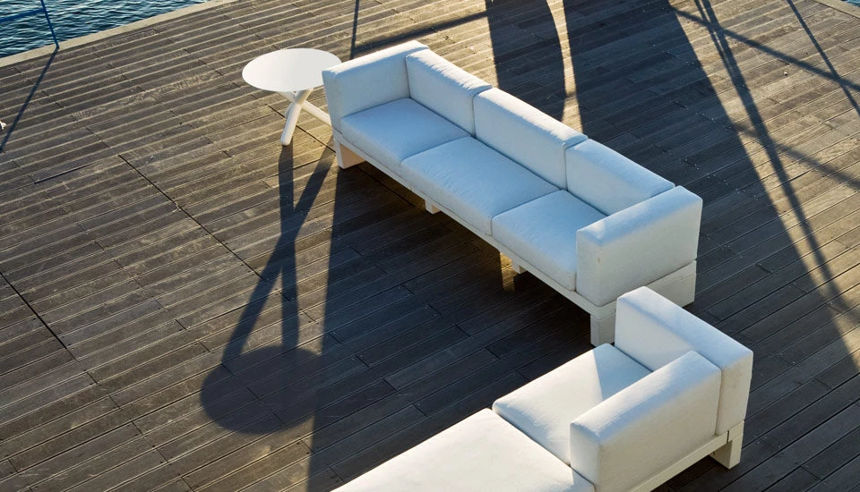 With Hour outdoor sofas, by combining the different modules with one another, you can achieve an infinite number of solutions. Ideal for commercial premises.