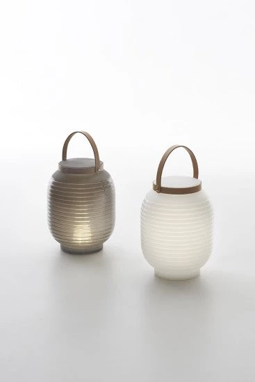 The leather handle makes them easy to transport and even to hang from the branch of a tree, thus making these modern lamps practical and versatile.