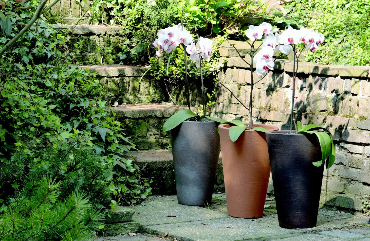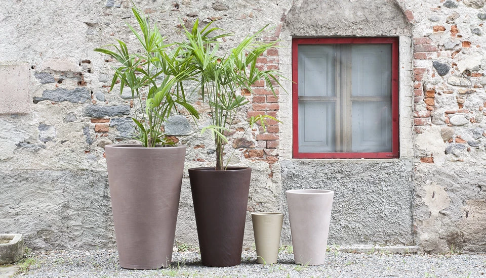 One of the classic models of plant pots par excellence, featuring a slender shape and a simple design. Its size makes it perfect both for potting flowers and plants and for holding cut flowers with long stems. It can be used both indoors and outdoors and is suitable for use as a cache-pot.”