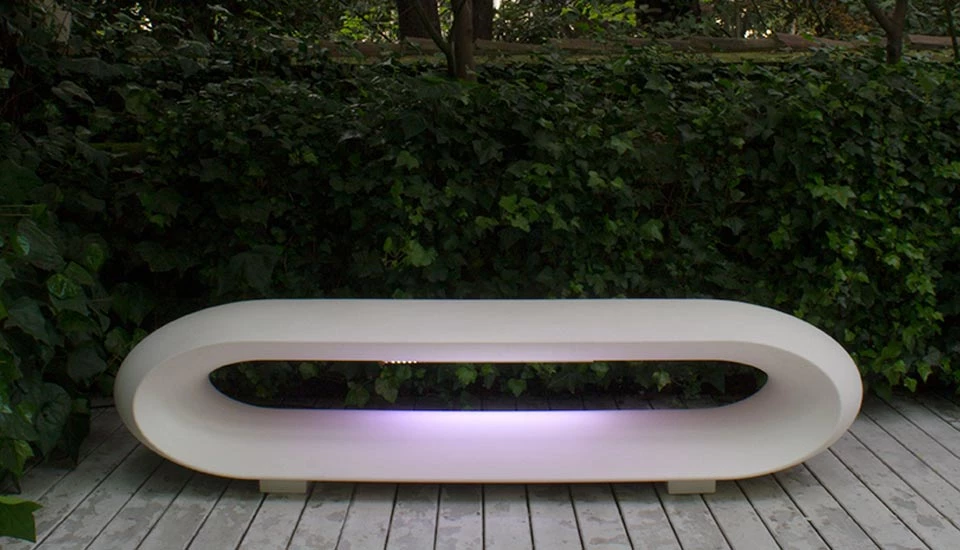 A special feature is an opening in the internal part of the garden bench, which makes the structure lighter and the visual impact more streamlined, while at the same time making it stronger.