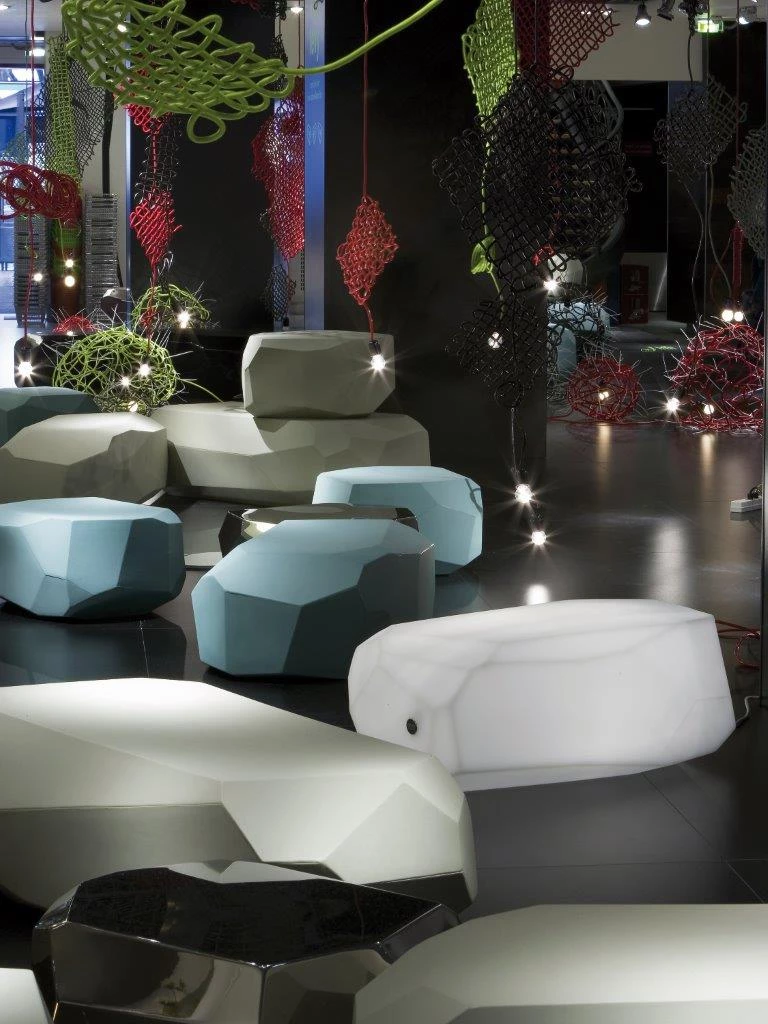 “The “”METEOR”” garden bench family, designed by Arik Levy, is a sort of alien homedecor item, fallen to Earth, a redesign of the typical natural stone found in the landscape, now taken and transformed into an object of the domestic and urban landscape.
