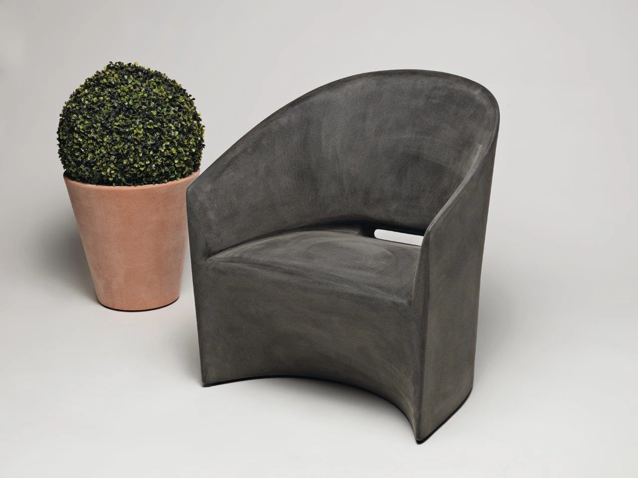 The Pine Beach line is inspired on the seashore, with its soft, rounded shapes. A rounded, embracing armchair that follows the human body’s er-gonomic shape, with a soft and futuristic line. Complete with sofa and armchair, suitable for indoor or outdoor areas. Thanks to their draining system, with a small drain hole for water, it is possible to sit on these pieces even after heavy rain.