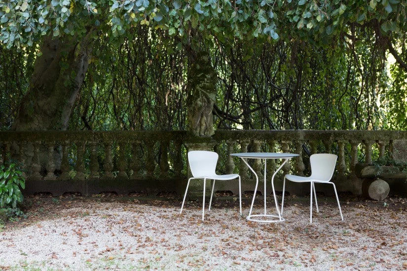 The metal tubular structure of this chair, with a single-piece polypropylene shell, is reminiscent of the harmonious viennese style of the late nineteenth century curves.